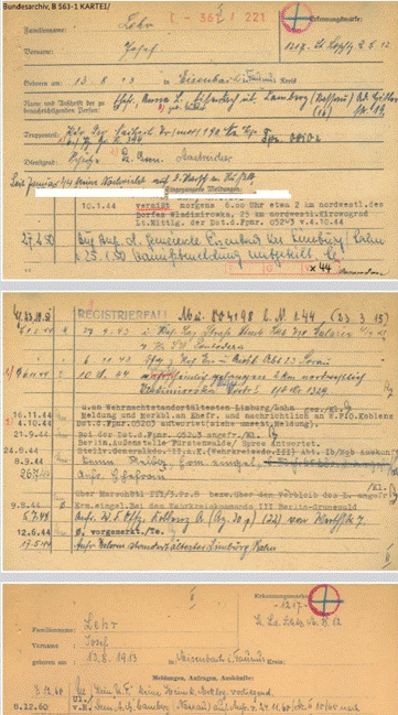 Zudem teilte das Bundesarchiv mit, dass den Erkennungsmarkenverzeichnissen und Veränderungsmeldungen der Wehrmacht für Josef Lehr noch Folgendes zu entnehmen ist: